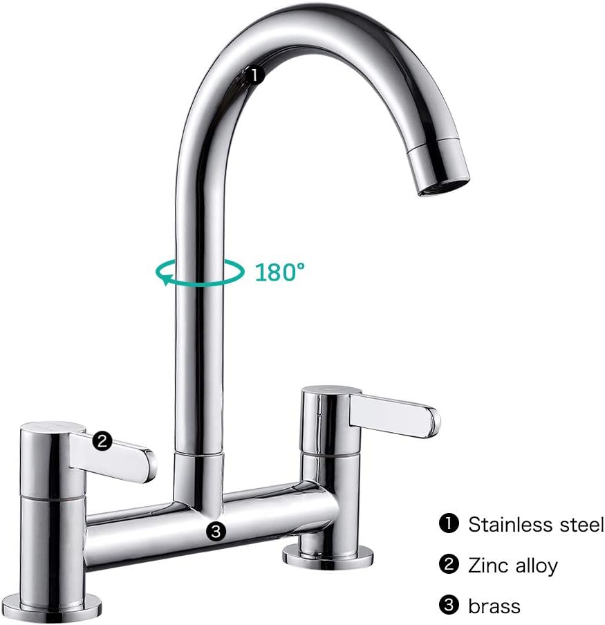 Buy Kitchen Sink Mixer Taps 2 Hole Dual Lever Chrome Kitchen Tap 180mm Centres Deck Mounted 360 Swivel Spout 1 4 Turn Brass Basin Bridge Mixer Faucet With Uk Standard Fittings Chrome Online
