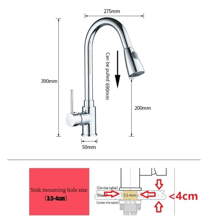 Single Level Pull Out Kitchen Sink Tap 304 Stainless Steel Kitchen Faucet With Pull Down Shower Head Mixer Water Tap Furniture Home Living Bathroom Kitchen Fixtures On Carousell