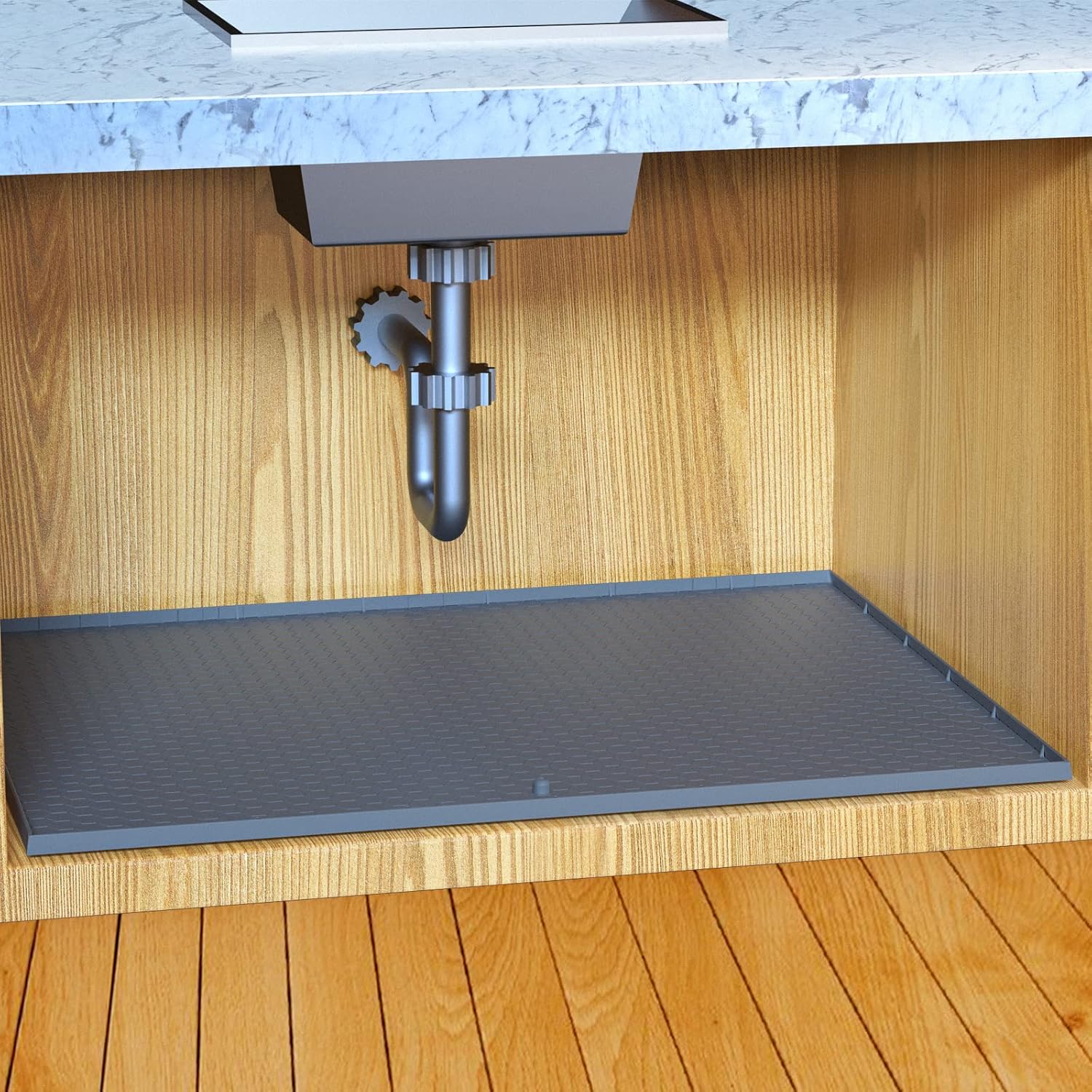 BASIN Under Sink Mat for Kitchen Waterproof - The Original Silicone Under Sink Liner Drip Tray -. Eapele Under Sink Mat Kitchen Cabinet Tray 34 x 22 Flexible Waterproof Silicone Made Hold up to 33 Gallons Liquid Grey. Under Sink Cabinet Mat Protector Bathroom Kitchen Drip Spill Tray 28 x 19.