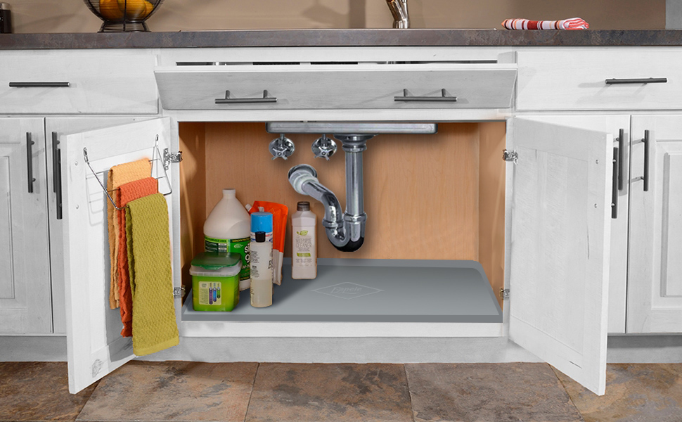 Free shipping Free shipping Free shipping. Eapele Under Sink Mat Kitchen Cabinet Tray 34 x 22 Flexible Waterproof Silicone Made Hold up to 33 Gallons Liquid Grey. Please note it is essential to ensure that it is compatible with the particular size and shape of your sink cabinet.