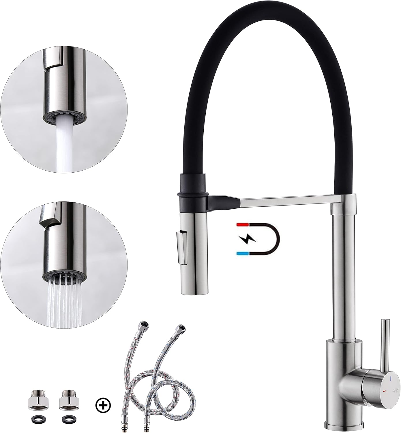 Buy Kenes Pull Out Kitchen Sink Mixer Tap 360 Swivel Kitchen Mixer Taps With Black Silicone Cold Hot Water With Magnetic Docking Made Of Stainless Steel Online In Indonesia B092z5fg6y