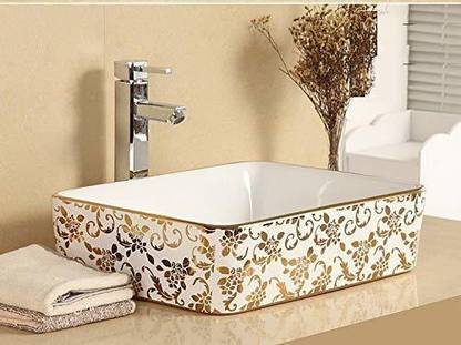 Tap Tile Most Golden White Wash Basin Dimension W480xl370xh130mm Ractanguler Design Countertop Tabletop Ceremic Bathroom Sink Basin Table Top Basin Price In India Buy Tap Tile Most Golden White Wash